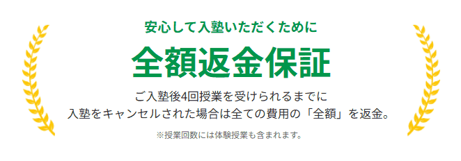 入塾後4回以内の退塾であれば授業料が全額返金される制度があり、費用の面でも安心して始められる点が魅力です。
