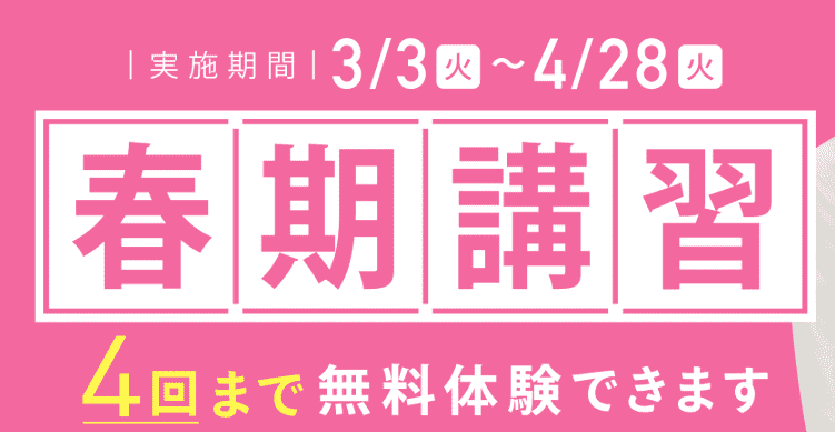 春期講習は3月3日から4月28日まで開催されていて、そのうち4回は無料で体験ができます。