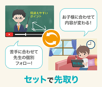 もし復習を優先させたい場合は、学校教材連動型のドリル教材がおすすめです。ドリル教材で復習しつつRISU算数で先取り学習をすれば、苦手克服で苦労している子でも算数の成績アップが図りやすくなります。