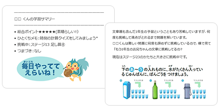 しかし、RISU算数は学習状況をメールで伝えるので、仕事の都合で勉強の面倒が見られない保護者でも、安心して利用できます。学習の進捗状況を細かく伝えてくれるため、子どもがどの範囲を学習しているのか把握しやすいのもポイントです。