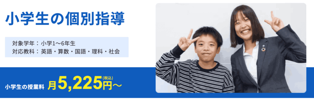 | 料金目安 | 小学生:月額5,000円台~ ※教科数・コマ数により異なる/入塾金・教材費別 |