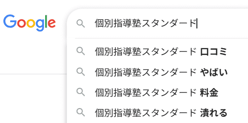 個別指導塾スタンダードを調べると上記の画像のように「やばい」「潰れる?」といった心配の声が目に入ります。